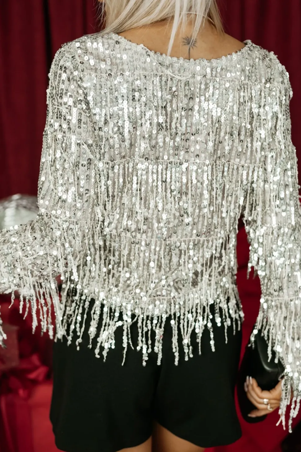 BLUZKA CEKINOWA GIORGIA Z FRĘDZLAMI BEŻOWA