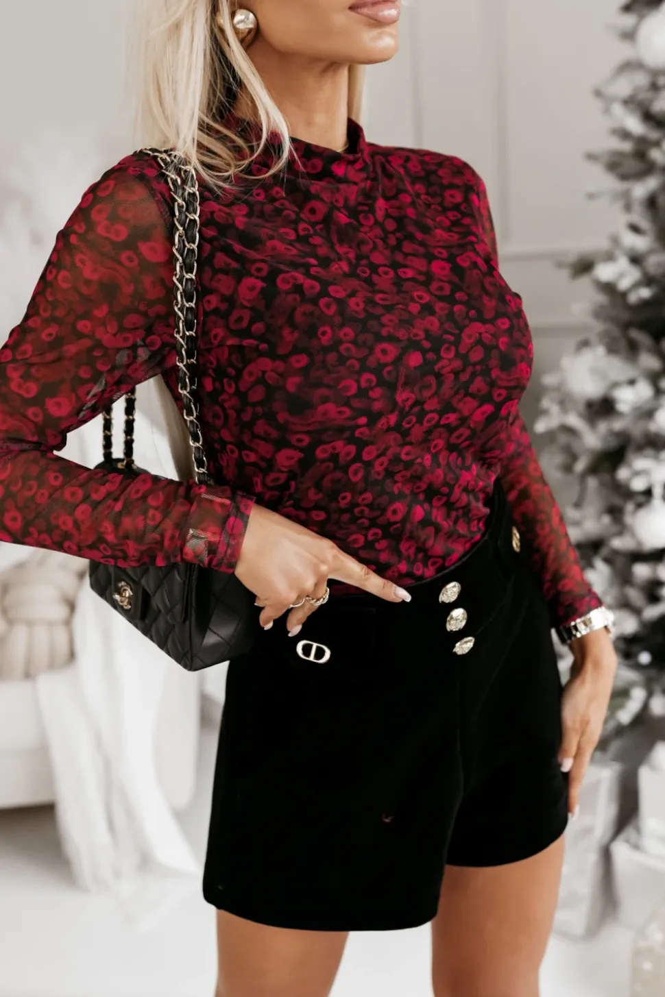 Siateczkowa bluzka z eleganckim półgolfem i długimi rękawami. Model wyposażony w podszewkę, która zapewnia komfort noszenia i subtelnie kryje ciało. Idealna do stylizacji na wyjątkowe okazje lub jako modny akcent codziennego looku.