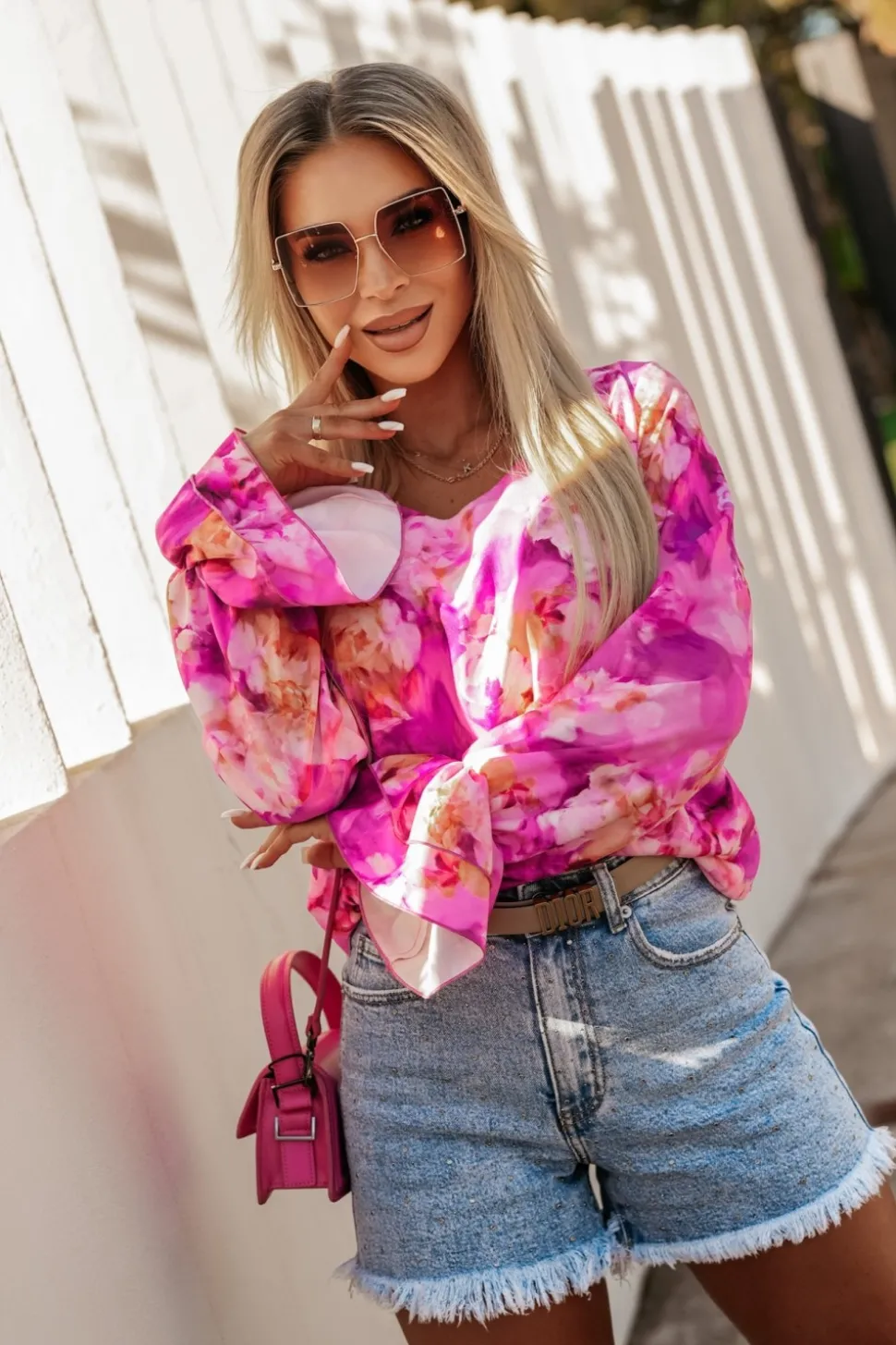Elegancka bluzka koszulowa z dekoltem w serek. Oryginalności nadają jej długie rękawy zakończone piękną falbaną. Jej prosty fason będzie idealnym zestawieniem zarówno do eleganckiego dołu, jak i do bardziej casualowych stylizacji.