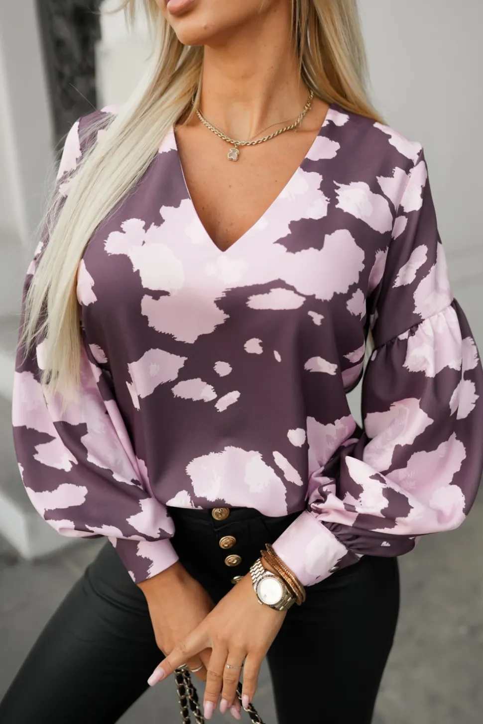 Elegancka bluzka koszulowa z głębokim dekoltem w serek. Bluzka posiada szersze rękawy zakończone mankietem. Jej piękny fason będzie idealnym zestawieniem zarówno do eleganckiego dołu, jak i do bardziej casualowych stylizacji.