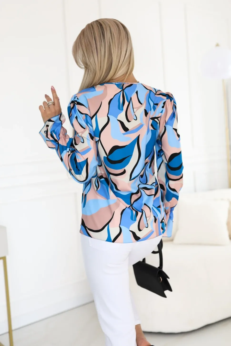 Bluzka koszulowa o prostym kroju, idealna na różnorodne okazje. Okrągły dekolt z ozdobnym wiązaniem dodaje jej wyjątkowego charakteru. Długie rękawy zakończone są gumką i subtelną falbaną, co nadaje całości romantycznego uroku i lekkości. To połączenie elegancji i wygody, które sprawdzi się zarówno w codziennych, jak i bardziej formalnych stylizacjach.