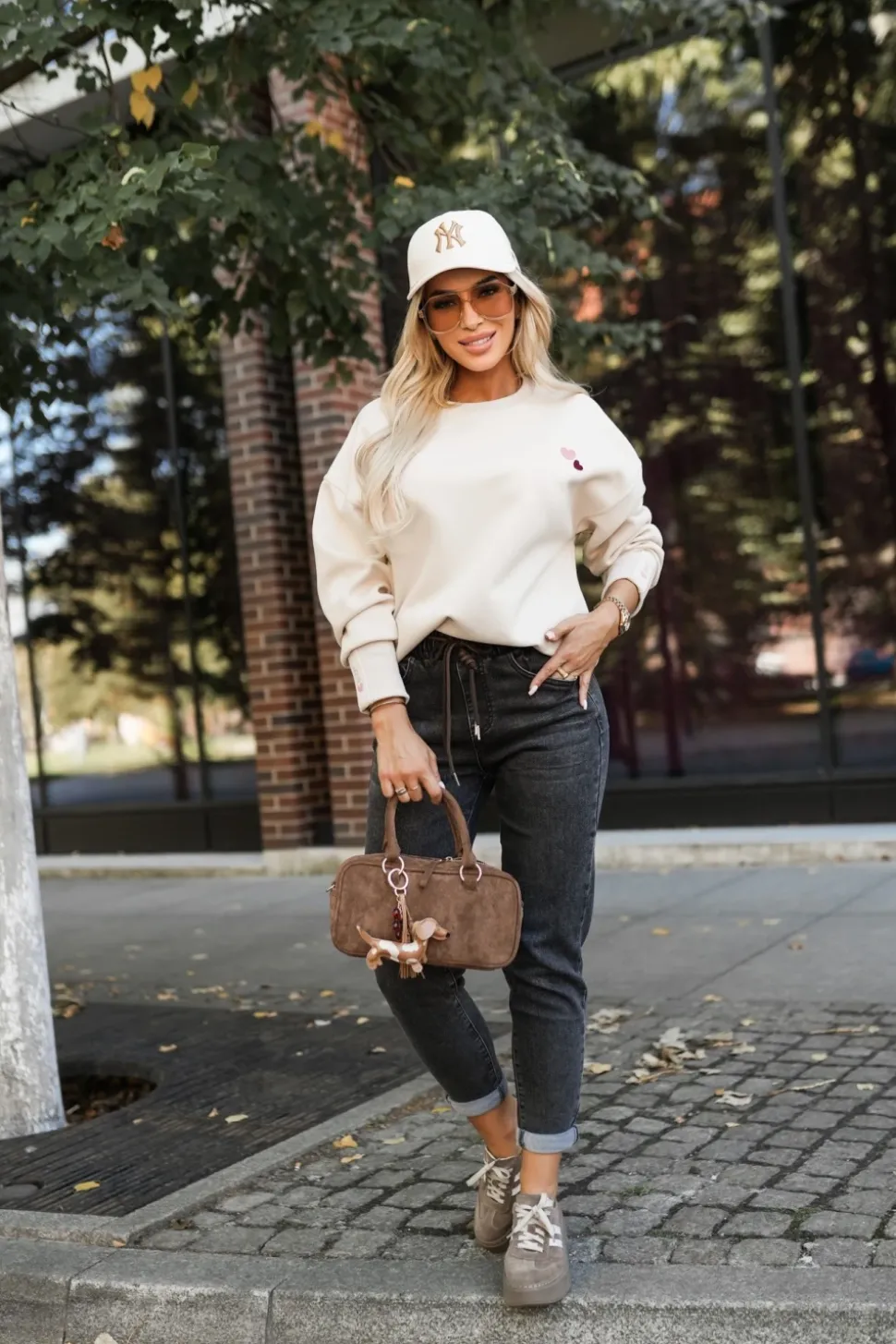 BLUZA DRESOWA BAWEŁNIANA LOVELY Z HAFTOWANYMI SERDUSZKAMI BEŻOWA