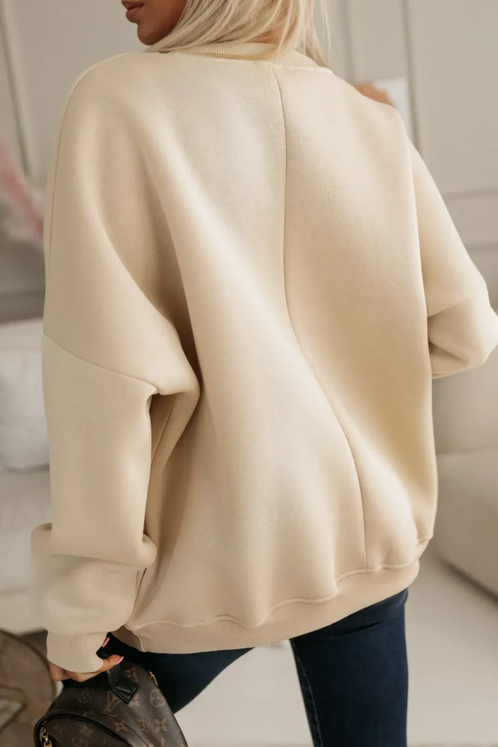 BLUZA DRESOWA OCIEPLANA Z HAFTOWANYMI KWIATAMI NA RAMIENIU BEŻOWA