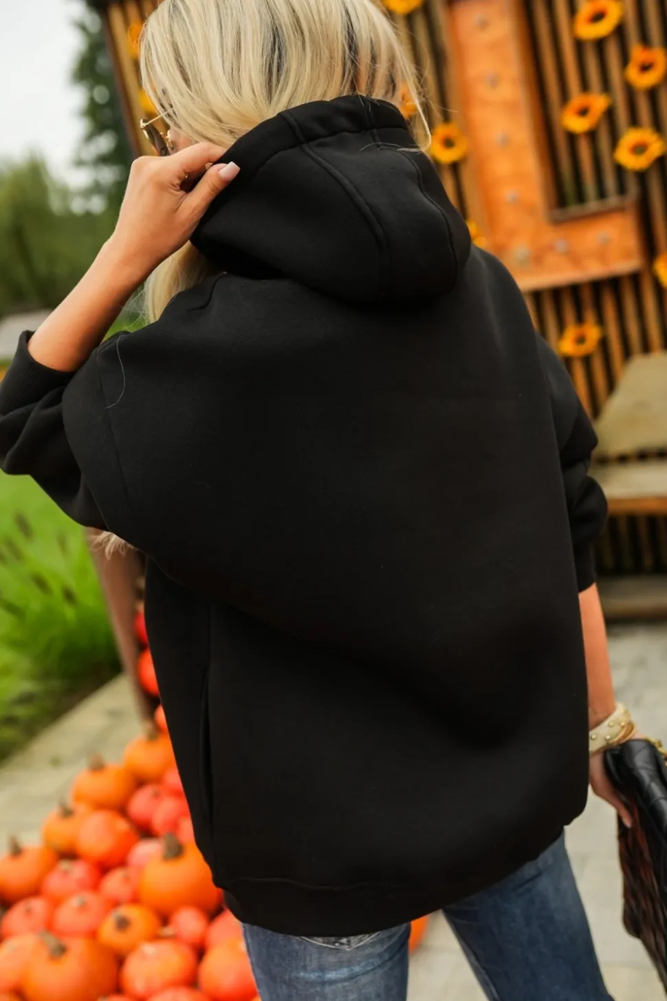 BLUZA DRESOWA OCIEPLANA Z KAPTUREM ZE ZŁOTĄ APLIKACJĄ MICKY CZARNA