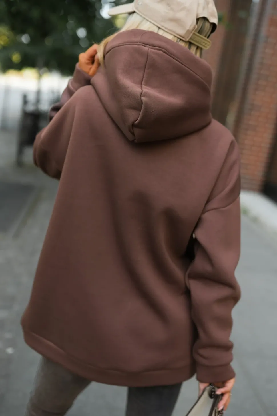 Ta długa, szeroka bluza to idealny wybór na chłodniejsze dni, zapewniając zarówno komfort, jak i styl. Wykonana z ocieplanego materiału, zapewnia ciepło i wygodę. Posiada kaptur, który dodaje jej funkcjonalności oraz chroni przed wiatrem. Długi rękaw zakończony jest ściągaczami, które zapewniają dobre dopasowanie i dodatkową ochronę przed zimnem, podobnie jak dół bluzy. Przednia kieszeń typu kangurka dodaje bluzie praktyczności. To doskonały element garderoby na dni, kiedy chcesz czuć się komfortowo, a jednocześnie wyglądać modnie.