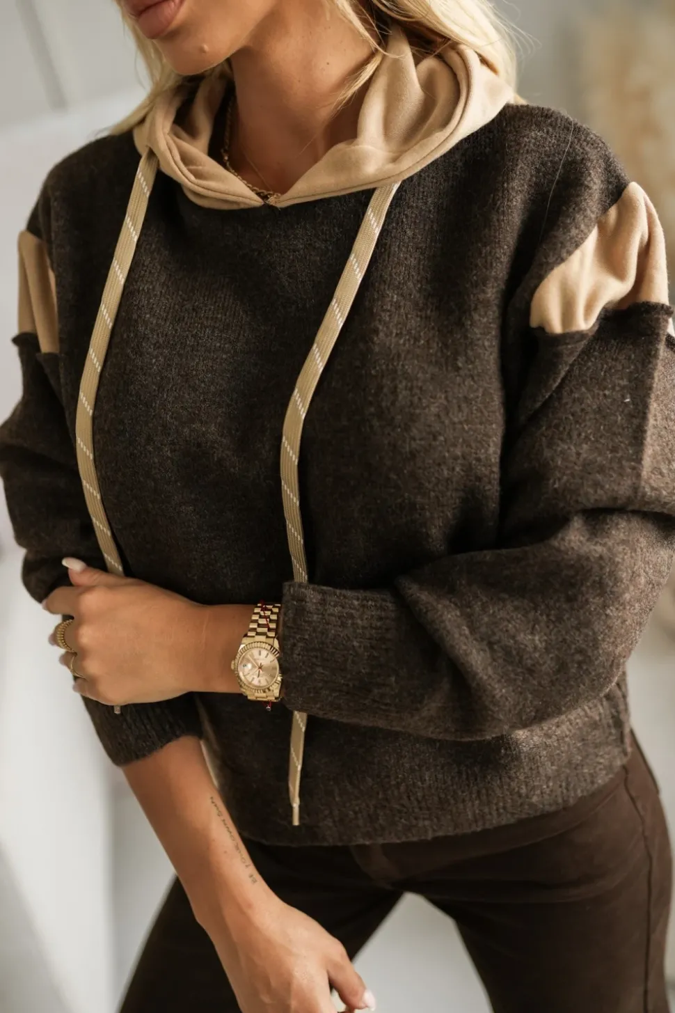 BLUZA SWETERKOWA SARA Z KAPTUREM CZEKOLADOWA