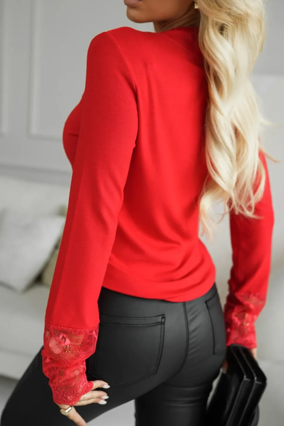 BLUZKA BAWEŁNIANA ALICE ZDOBIONA KORONKĄ I CYRKONIAMI CZERWONA