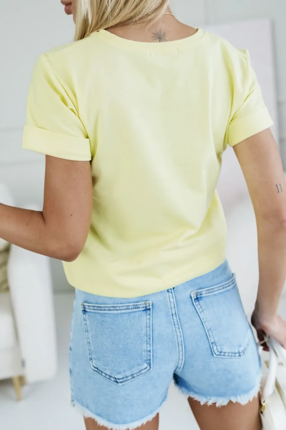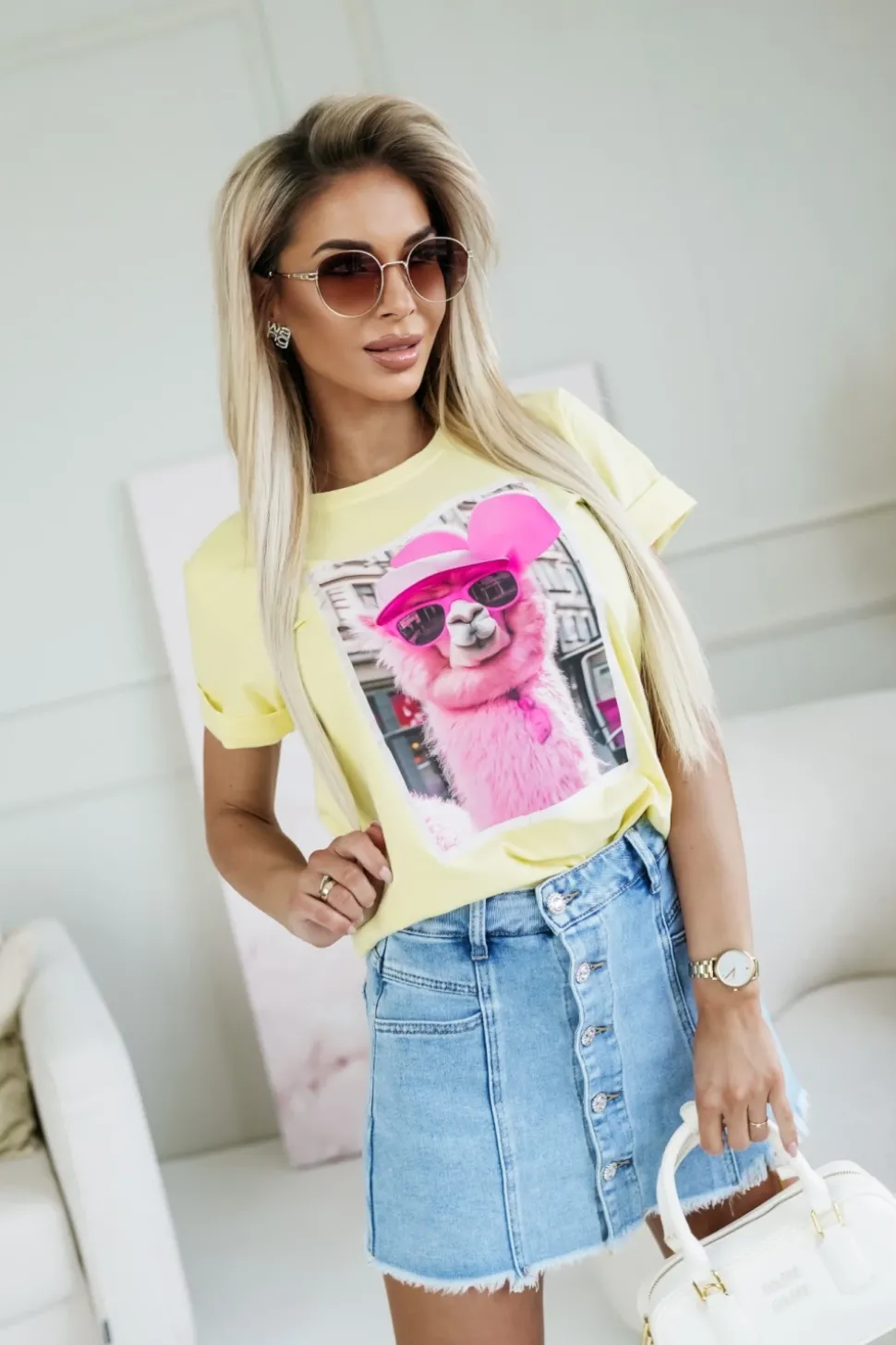 T-SHIRT BAWEŁNIANY Z NADRUKIEM LAMA W CZAPCE ŻÓŁTY