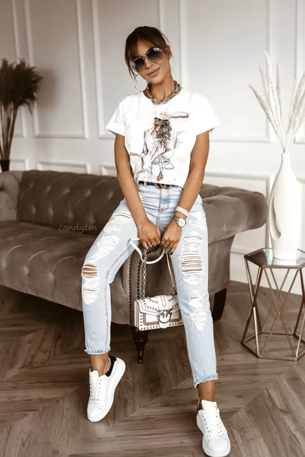 T-SHIRT PŁASZCZ I OKULARY