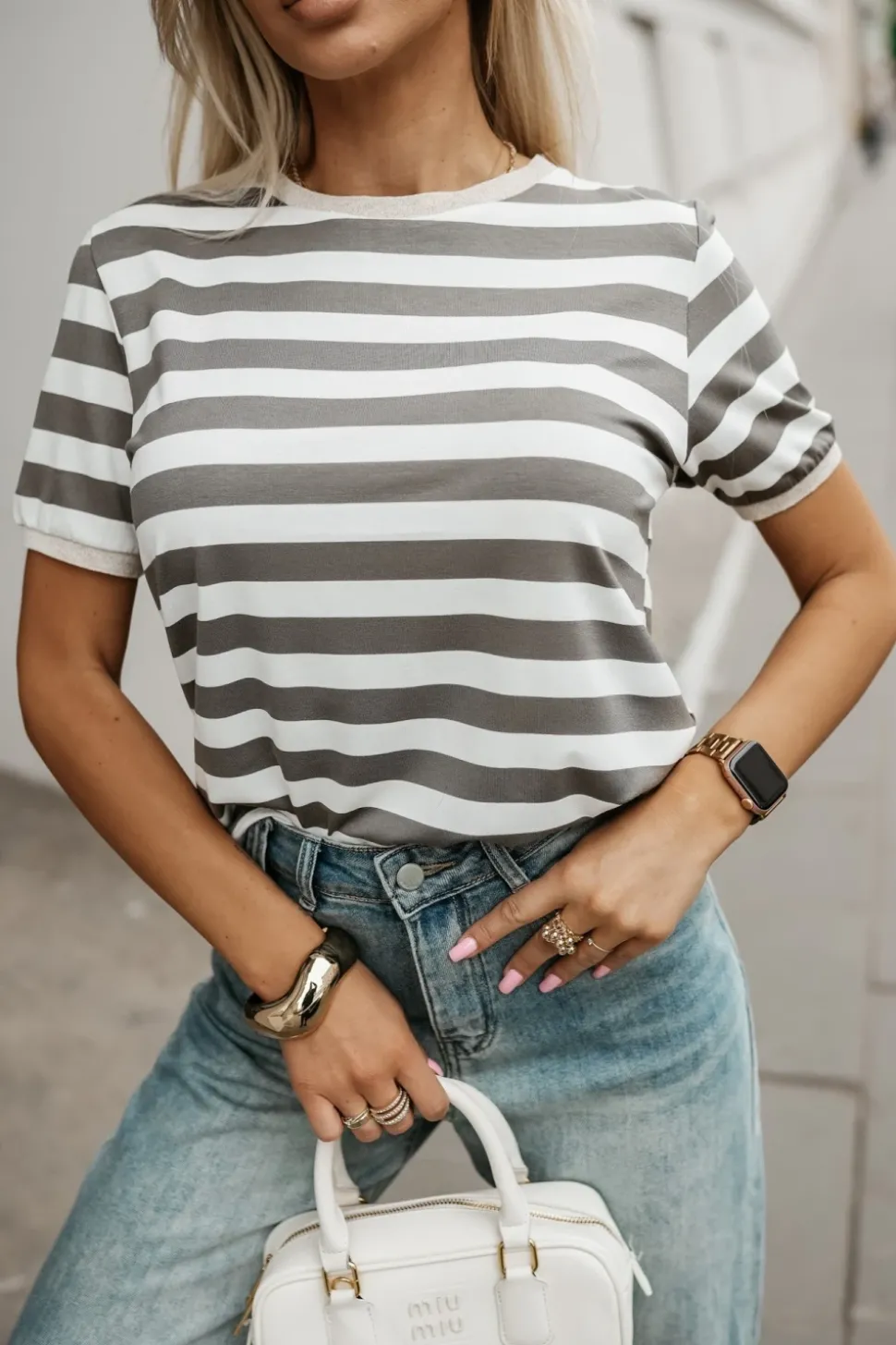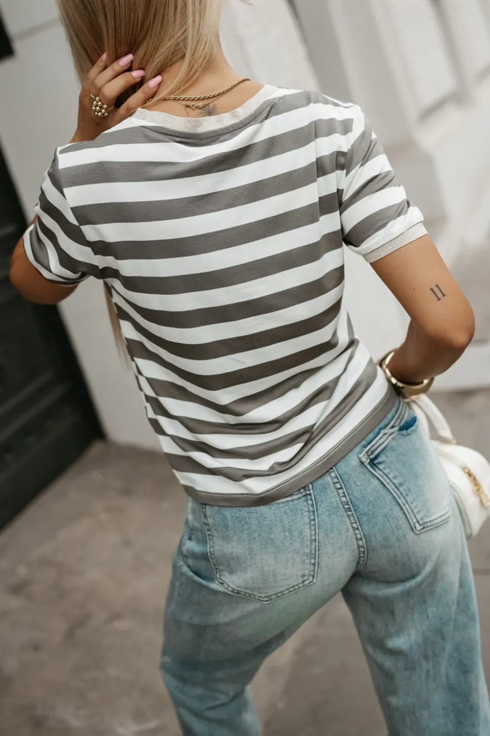 T-SHIRT TOMMY Z WISKOZY W PASKI ZIELONE-ECRU